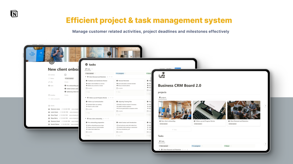 3. Efficient Task and project management: Streamline processes and view tasks and related projects boost operational efficiency.