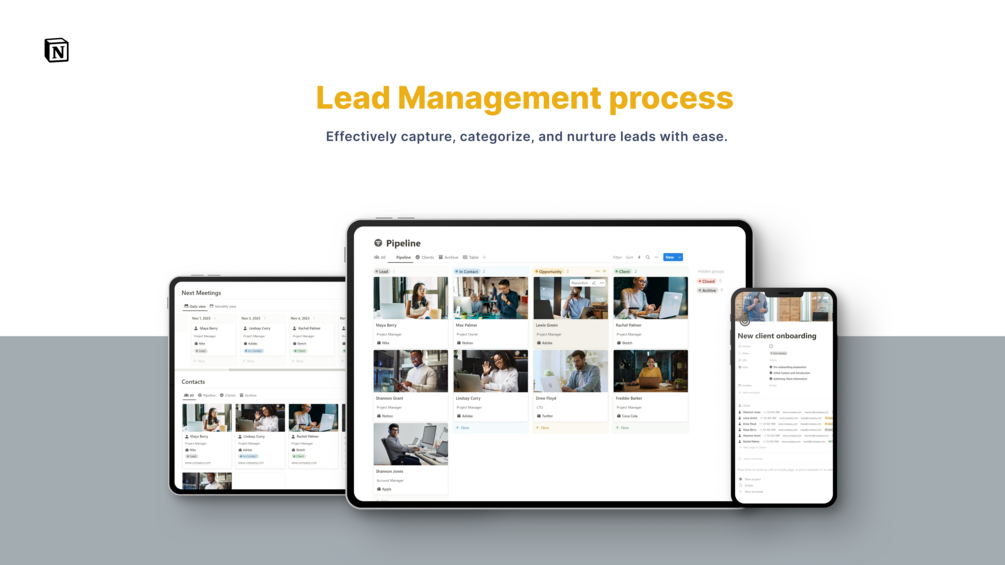4. Sales and client pipeline Management: Manage leads and nurture relationships to drive sales and increase revenue.