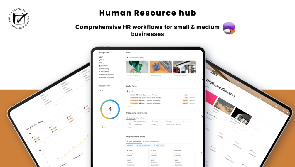 The Human Resource Hub is an all-in-one Notion template designed to streamline and elevate your HR processes.