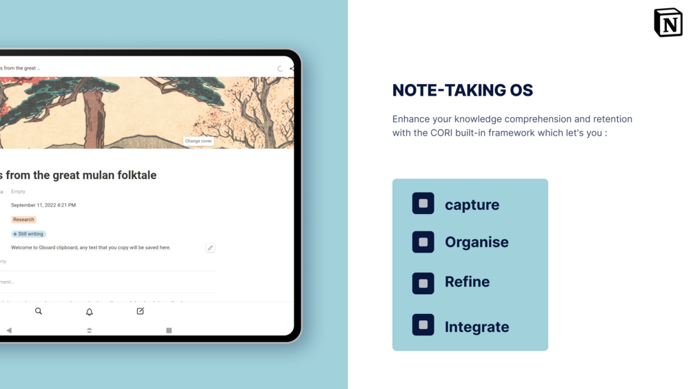 Note-taking OS provides different ways to take notes and capture your thoughts in a well structured manner.