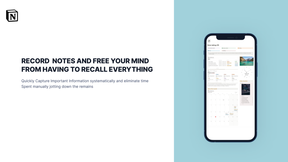 With the note taking OS you can easily capture ideas as they come to you. Bring your notes, to-dos, and schedule with you all in one place to subdue life's distractions and achieve moreโat work, at home, and everywhere in between.